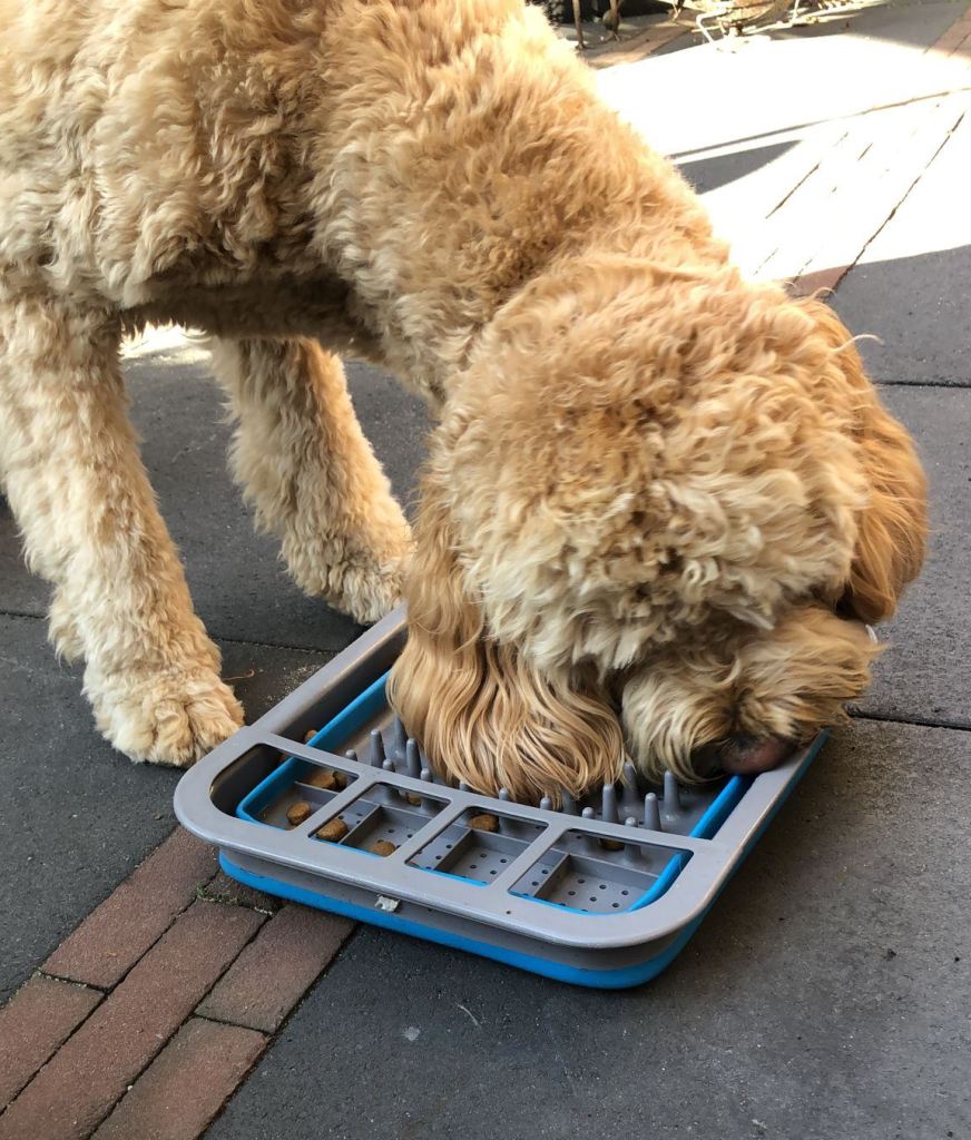 Maar iets meer moeite doen om je eten naar binnen te krijgen is voor elke hond goed: het ‘hoogtepunt van de dag’ duurt iets langer, er moeten oplossingen worden gezocht (hersenwerk), het voedsel wordt beter verteerd en het lijkt iets mee op een ‘natuurlijke manier’ van voedsel verkrijgen.