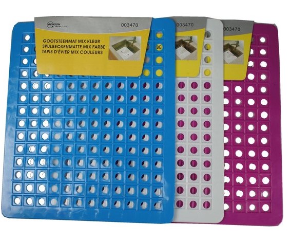 – gebruik een gootsteenmatje (of rubberen deurmat), zodat de brokjes de gaten moeten worden gevist